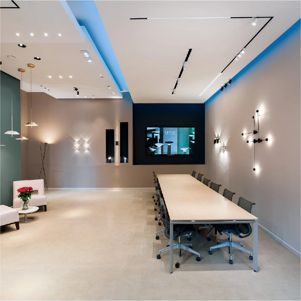 Este showroom especializado en luminarias arquitectónicas está ubicado en la ciudad de Bogotá. Transformé el espacio, cambiando las tonalidades en muros e intervención de la vitrina. De los viajes que he realizado, me inspiré en la exhibición tipo museo, para darle protagonismo a las luminarias como piezas de arte; ofreciendo una vitrina itinerante que se transforma constantemente.